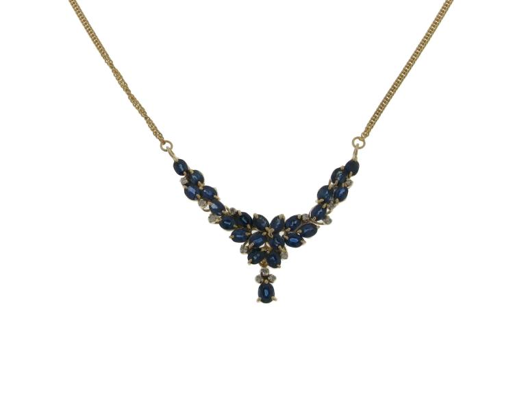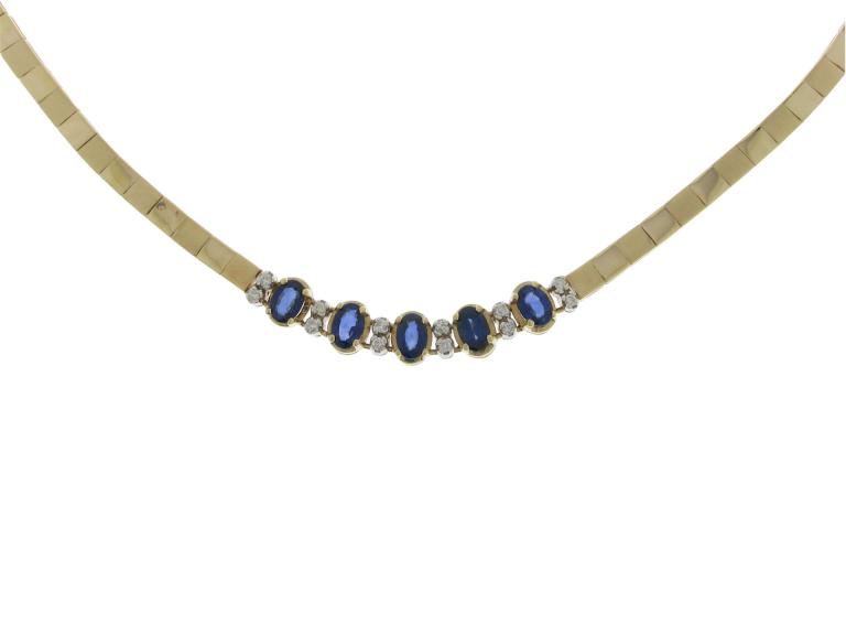 Sofort ab Lager (Abverkauf im Laden vorbehalten) 750 Gelbgold, Länge 42 cm, 4 Diamanten 8/8 ca. 0.04 ct, 13 Brillanten ca. 0.35 ct, 1 Safir, facettiert ca. 0.1 ct, 1 Safir Cabochon ca. 2.8 ct, Versicherungswert: CHF 4900 ///