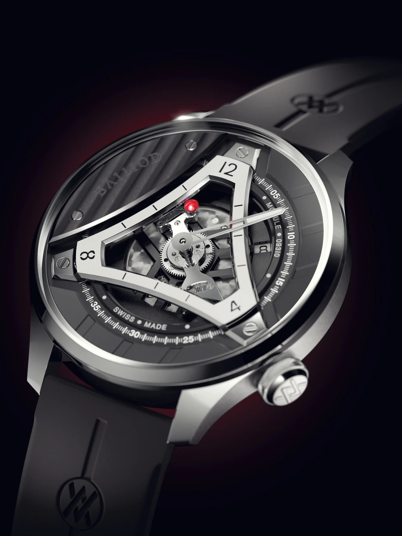KPTL-Delta ist die erste Manufaktur-Komplikation einer BA111OD-Uhr und definiert die Wahrnehmungsweise der Zeit neu. Mit ihrer wegweisenden Zykloidenbewegung, die in Zusammenarbeit mit dem renommierten Uhrmacher Olivier Mory entwickelt wurde, bietet diese Weltpremiere eine asymmetrische und hypnotisierende dreieckige Zeitanzeige - eine faszinierende und inspirierende Innovation.