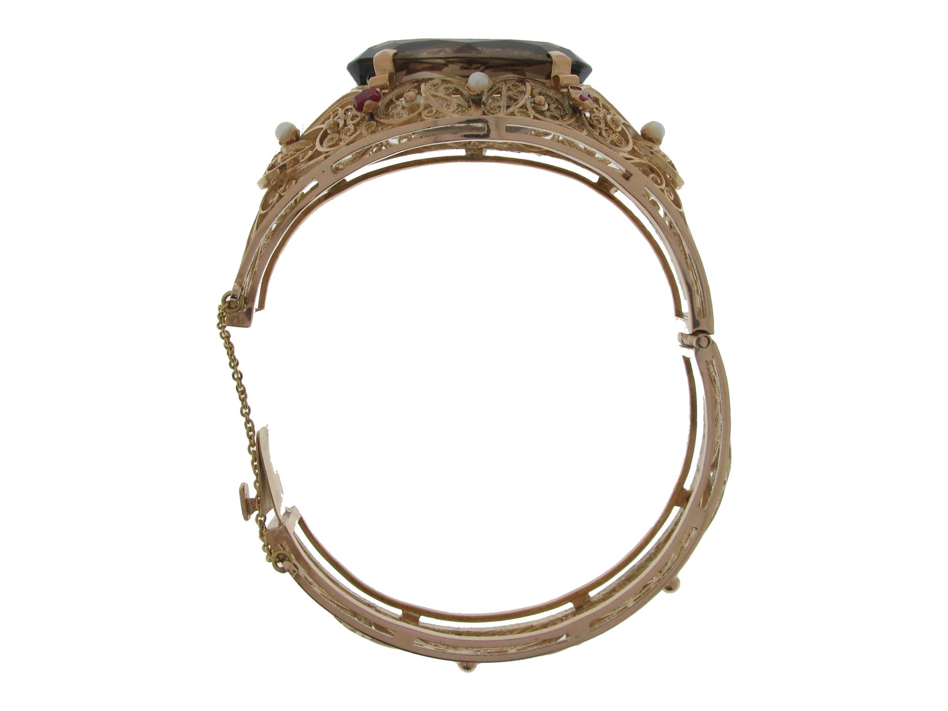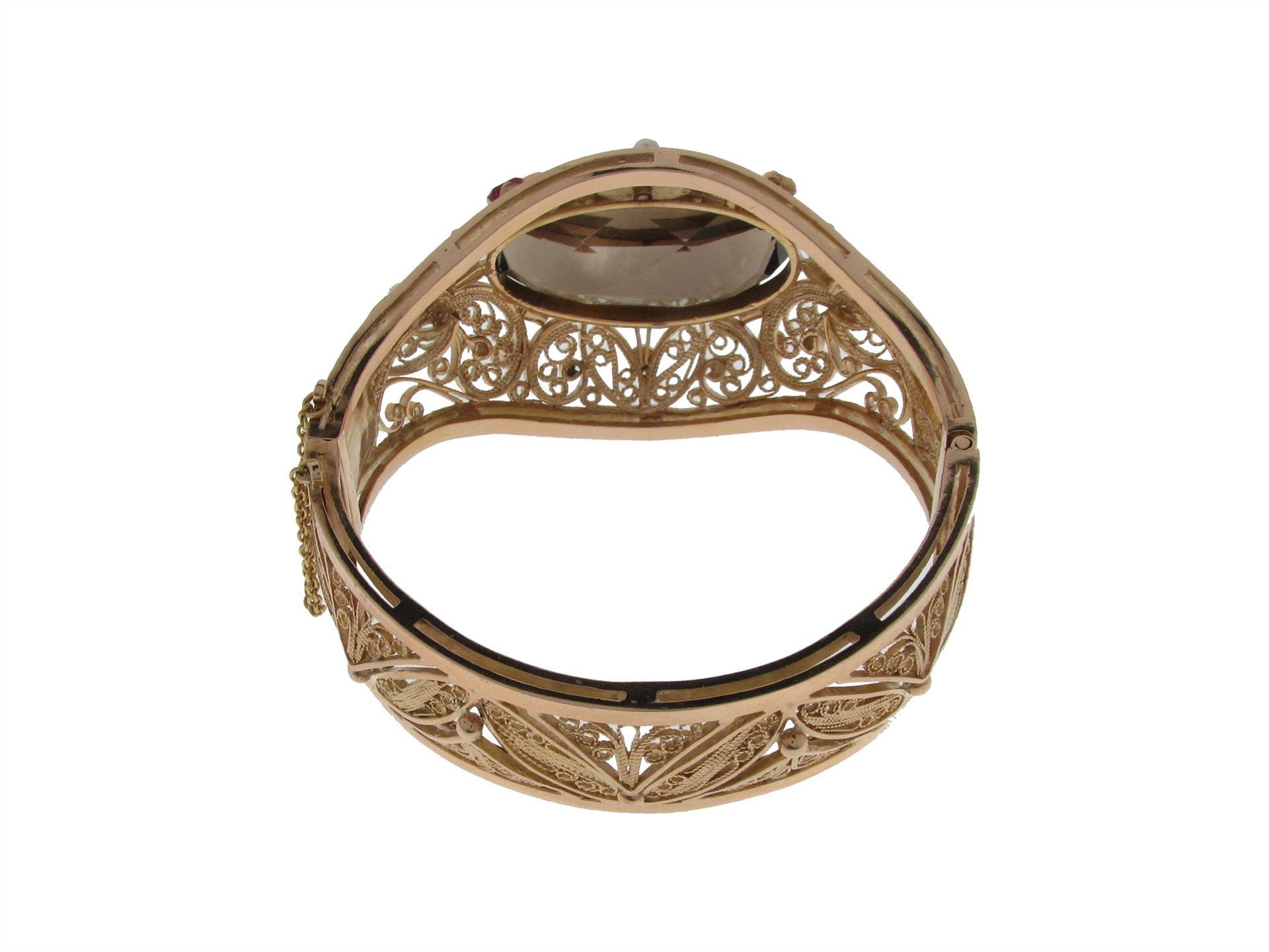585 Rotgold, 4 Rubine facettiert (leichte Defekte), 4 Kulturperlen 3mm, 1 Rauchquarz ca. 57 ct, Versicherungswert: CHF 15800 ///