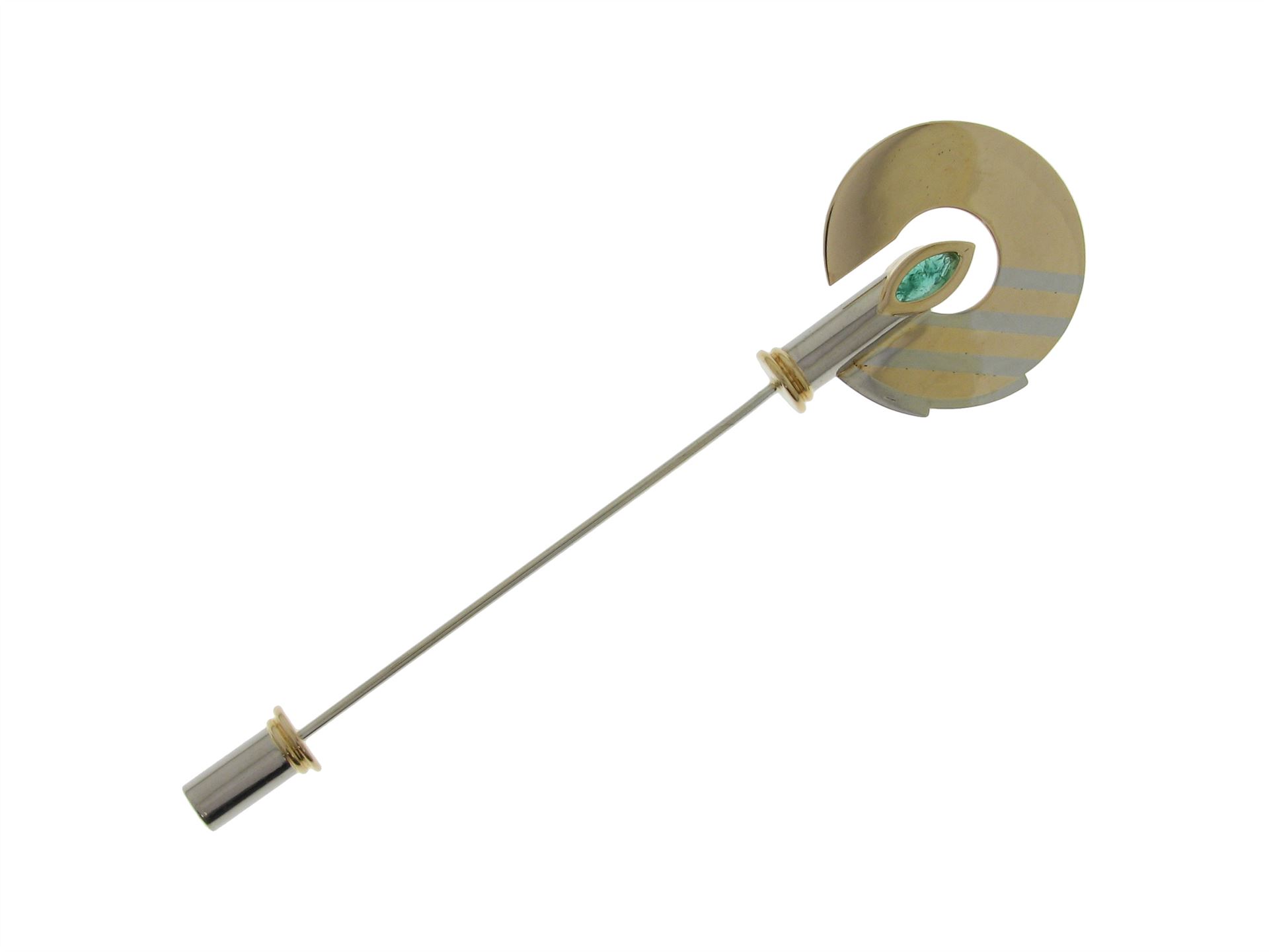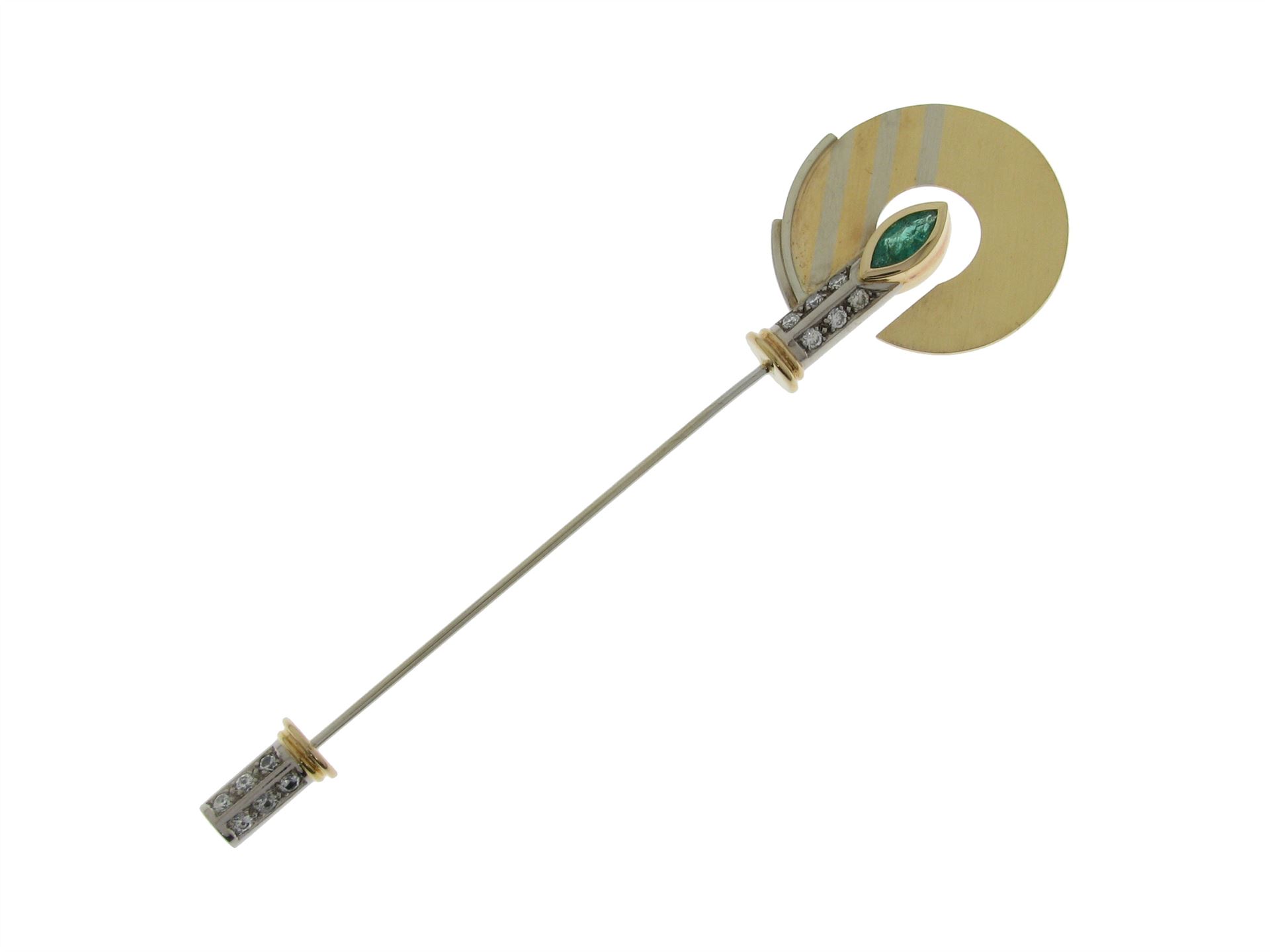 750 Gelb- und Weissgold (Palladium legiert), 12 Brillanten ca. 0.28 ct ca. TW si, 1 Smaragd facettiert ca. 0.37 ct, Versicherungswert: CHF 4700 ///
