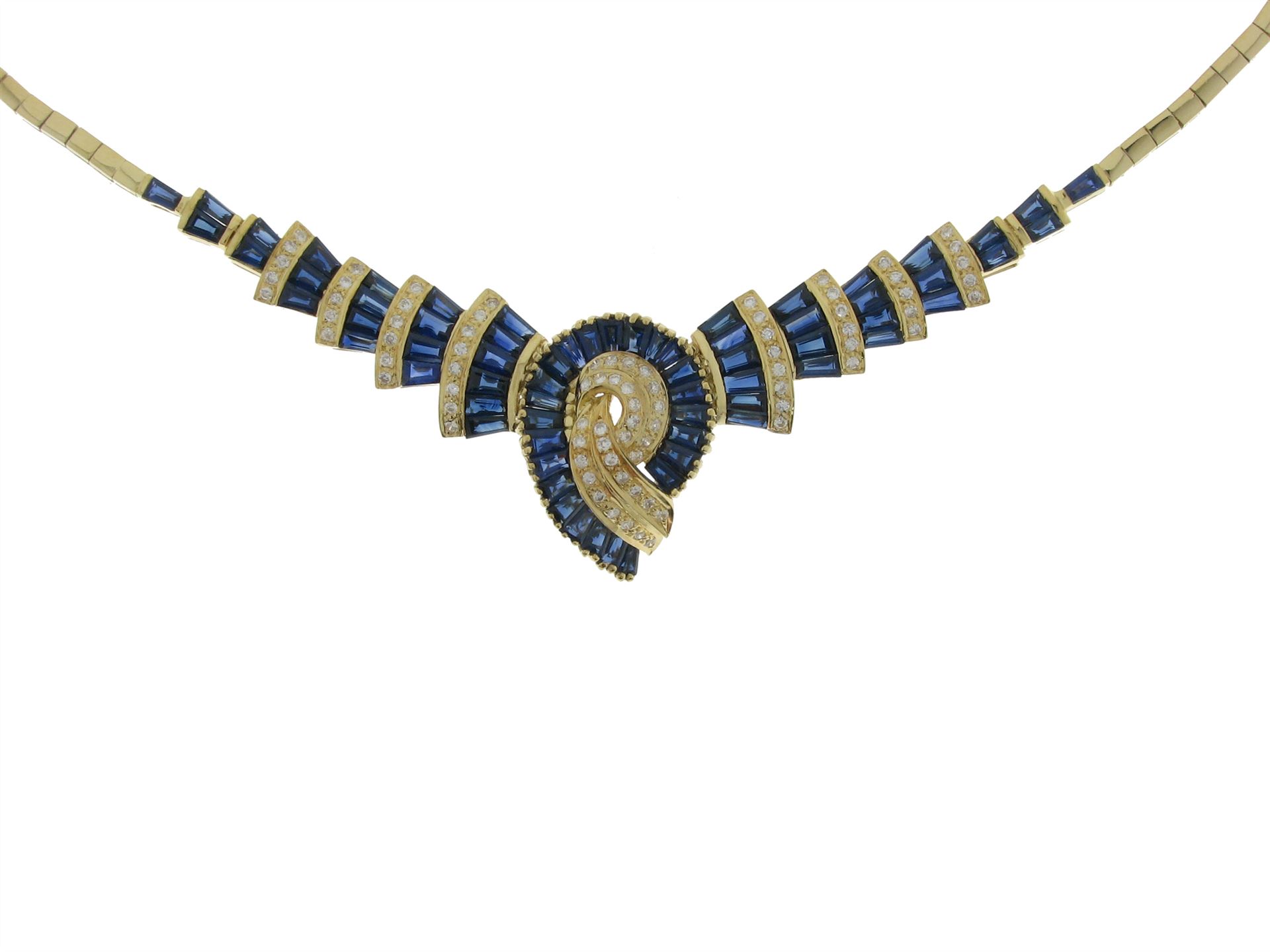 750 Gelbgold, Länge 42 cm, 68 Safire, facettiert ca. 11.56 ct, 80 Brillanten ca. 0.32 ct ca. H si, Versicherungswert: CHF 8300 ///