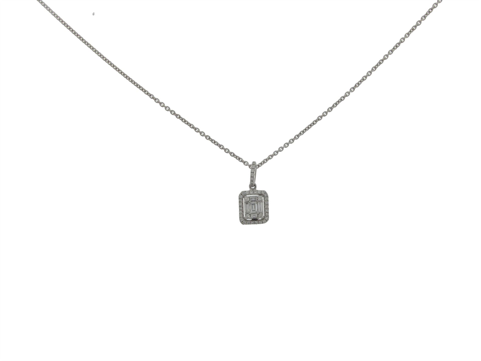 750 Weissgold, Länge 42 cm, 36 Brillanten ca. 0.12 ct ca. TW si, 5 Diamant-Baguetten ca. 0.11 ct, Versicherungswert: CHF 2200 ///- 4.2% Nickelanteil
