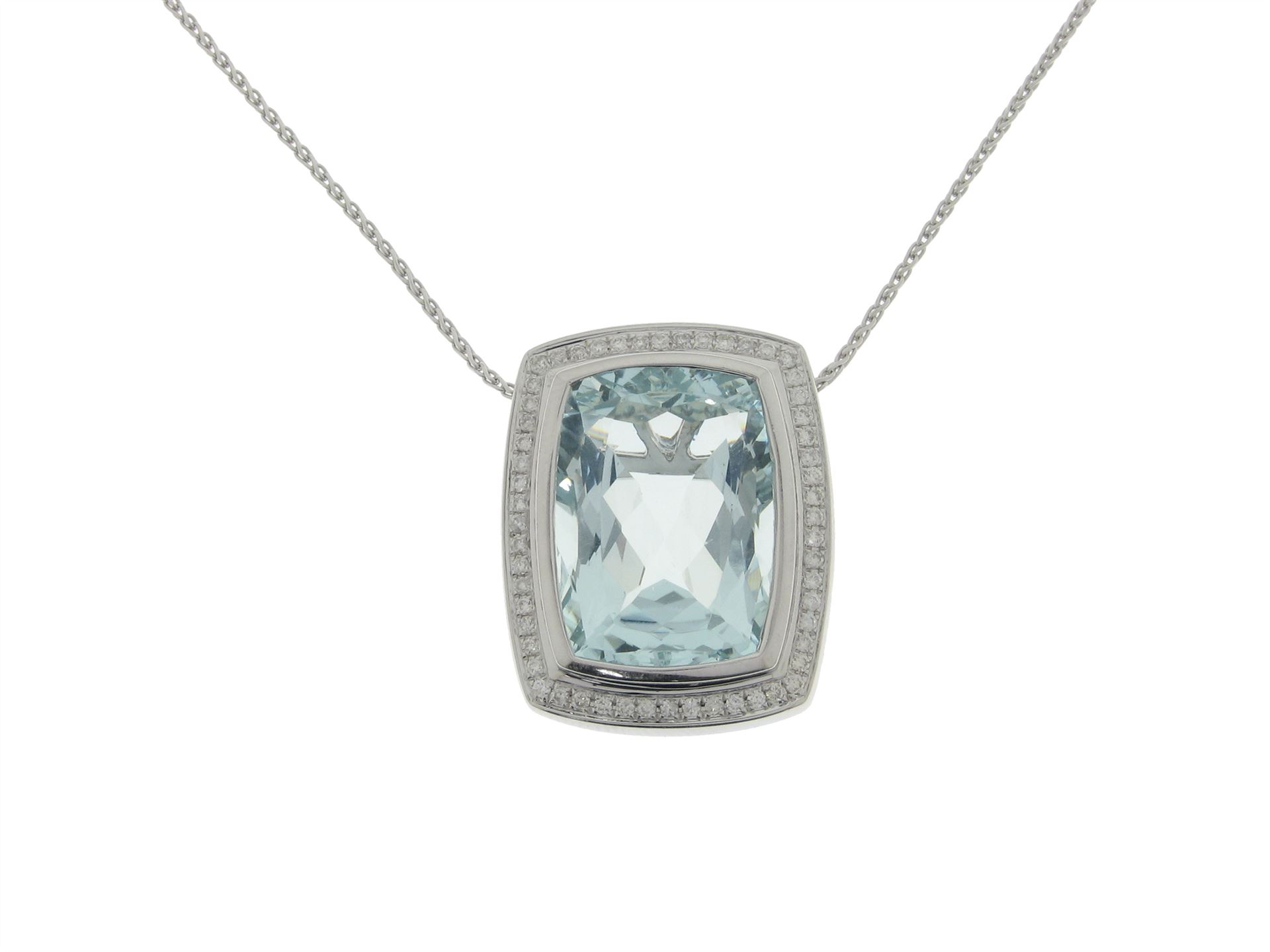 750 Weissgold, Länge 41 cm, 56 Brillanten ca. 0.33 ct ca. G si, 1 Aquamarin facettiert ca. 17.5 ct, Versicherungswert: CHF 8500 ///- 6.9% Nickelanteil