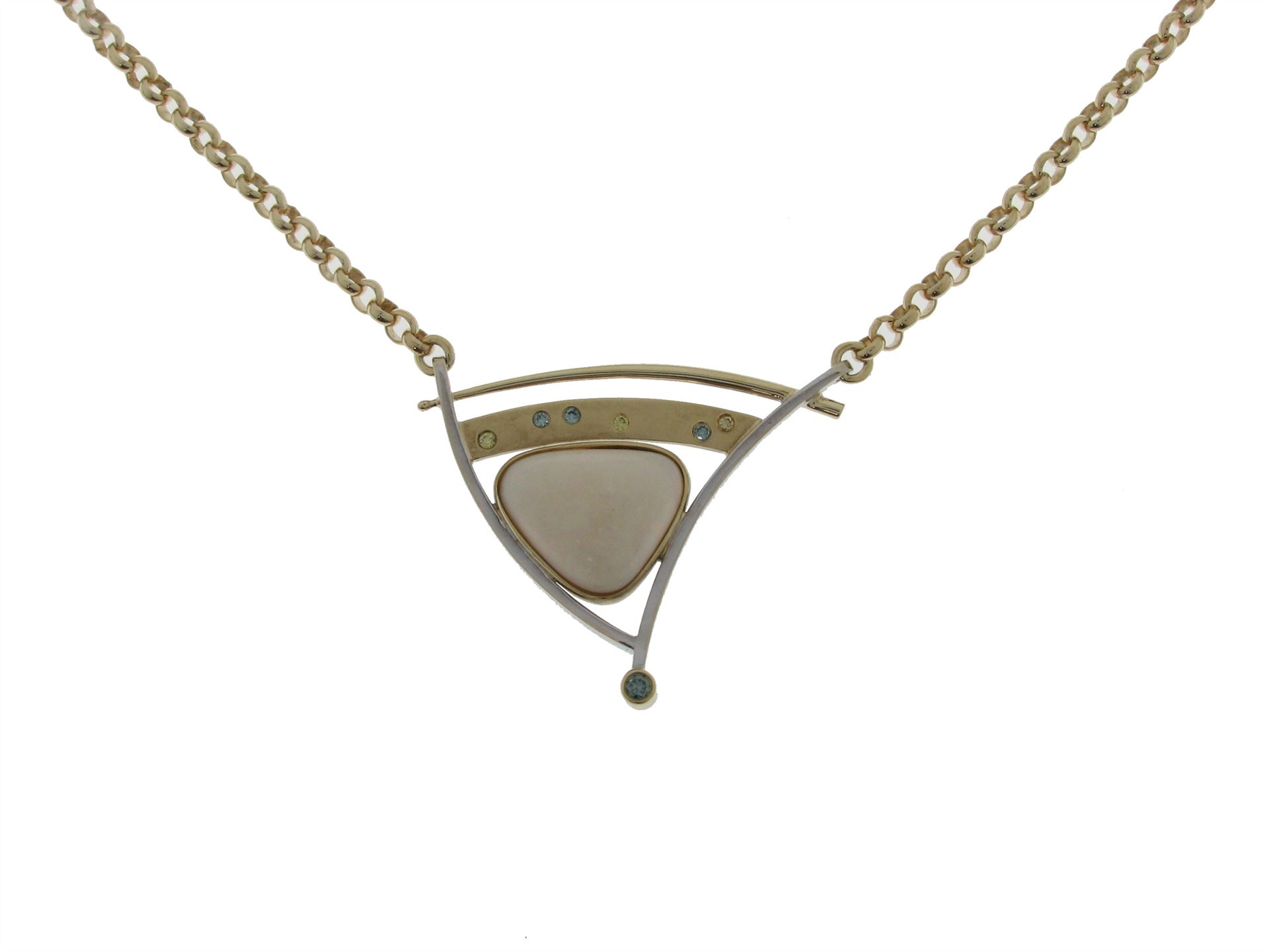 585 Gelb- und Weissgold, Länge 46 cm, 7 Brillanten ca. 0.14 ct gelb / blau behandelt, 1 Weissopal ca. 8.12 ct, Versicherungswert: CHF 6800 ///- 5.7% Nickelanteil