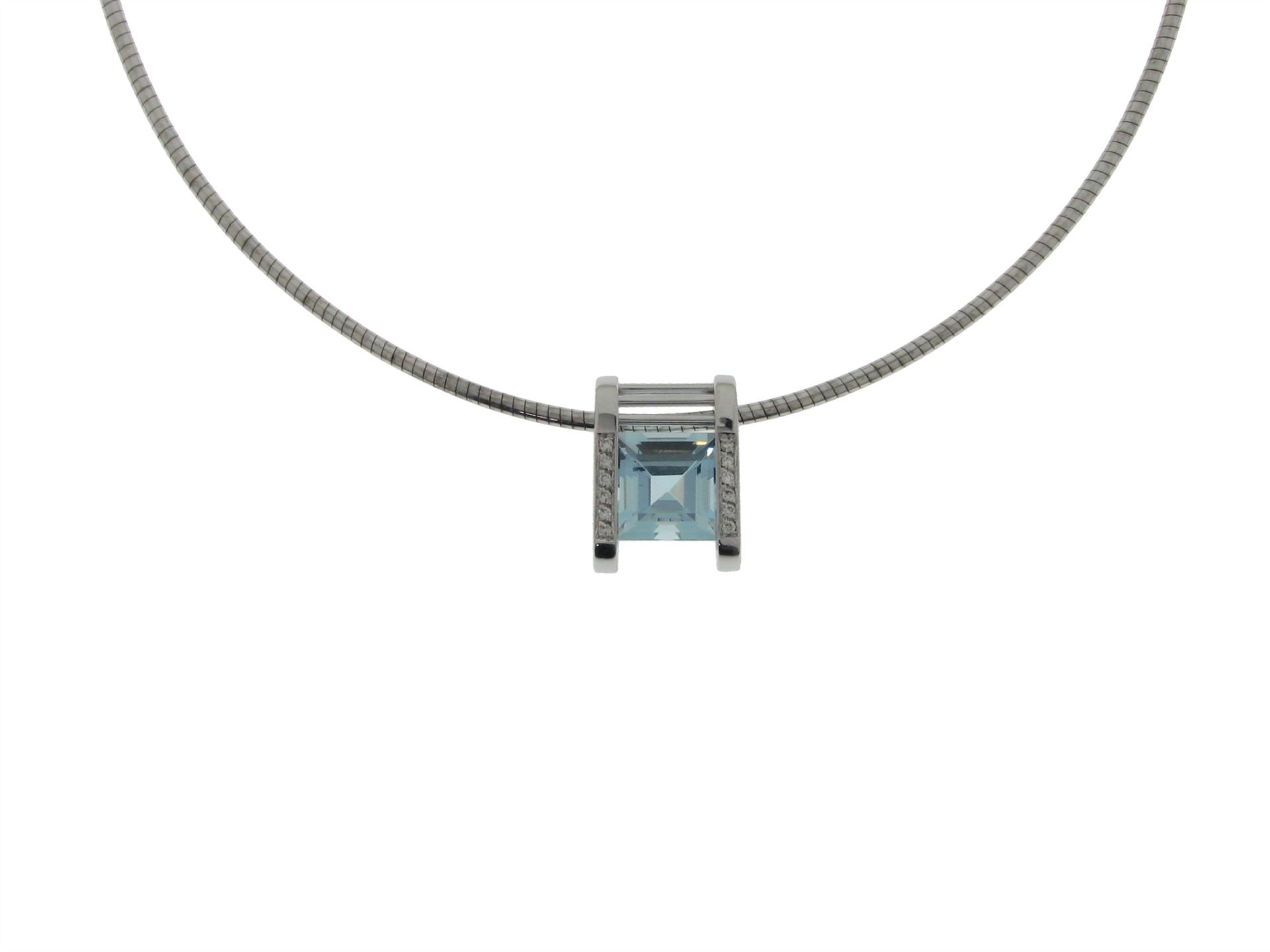 750 Weissgold und 585 Weissgold, Länge 40 cm, 12 Brillanten ca. 0.072 ct ca. H si, 1 Aquamarin facettiert ca. 4.6 ct, Versicherungswert: CHF 4700 ///- 7.2% Nickelanteil