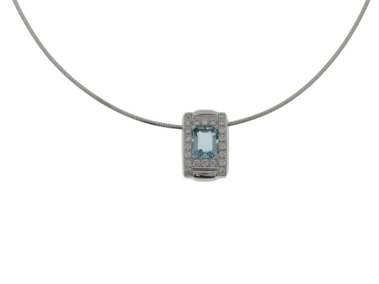 750 Gelbgold rhodiniert mit 585 Weissgold, Länge 42.5 cm, 22 Brillanten ca. 0.88 ct ca. H si, 1 Aquamarin facettiert ca. 2.8 ct, Versicherungswert: CHF 6900 ///