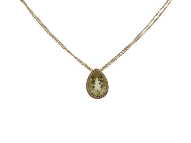 750 Gelbgold, Länge 40.5 cm, 34 Brillanten ca. 0.14 ct ca. H si, 1 Lemoncitrin facettiert ca. 5 ct, Versicherungswert: CHF 2600 ///