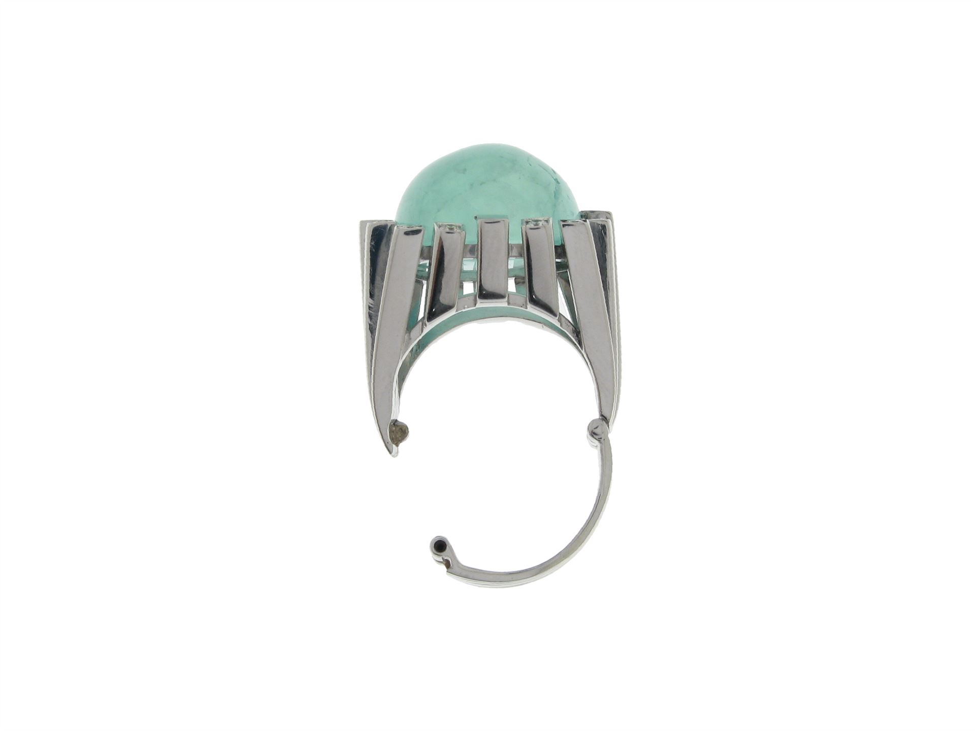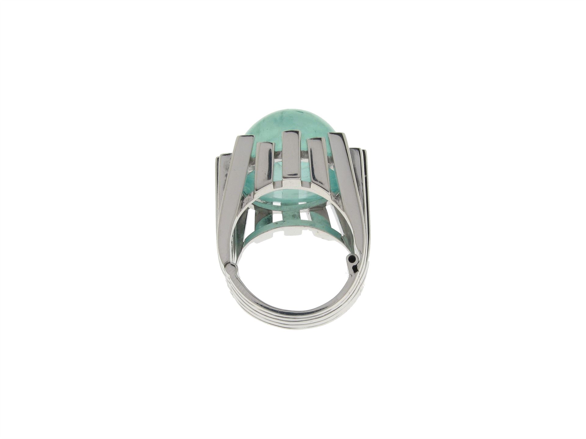 750 Weissgold (Palladium legiert), Ringgrösse 56, 12 Brillanten ca. 0.24 ct ca. H si, 1 Turmalin Cabochon ca. 0.29 ct, Versicherungswert: CHF 7500 ///- mit Scharnier