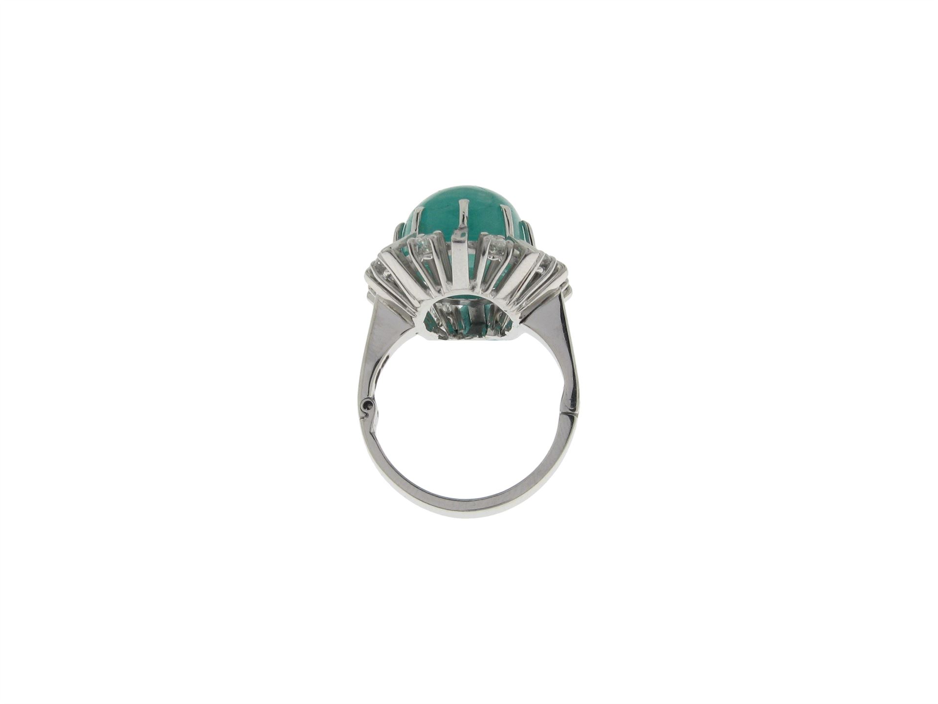 750 Weissgold und 585 Weissgold, Ringgrösse 55, 10 Brillanten ca. 0.5 ct ca. G si, 1 Smaragd Cabochon ca. 10 ct, Versicherungswert: CHF 5550 ///- mit Scharnier
