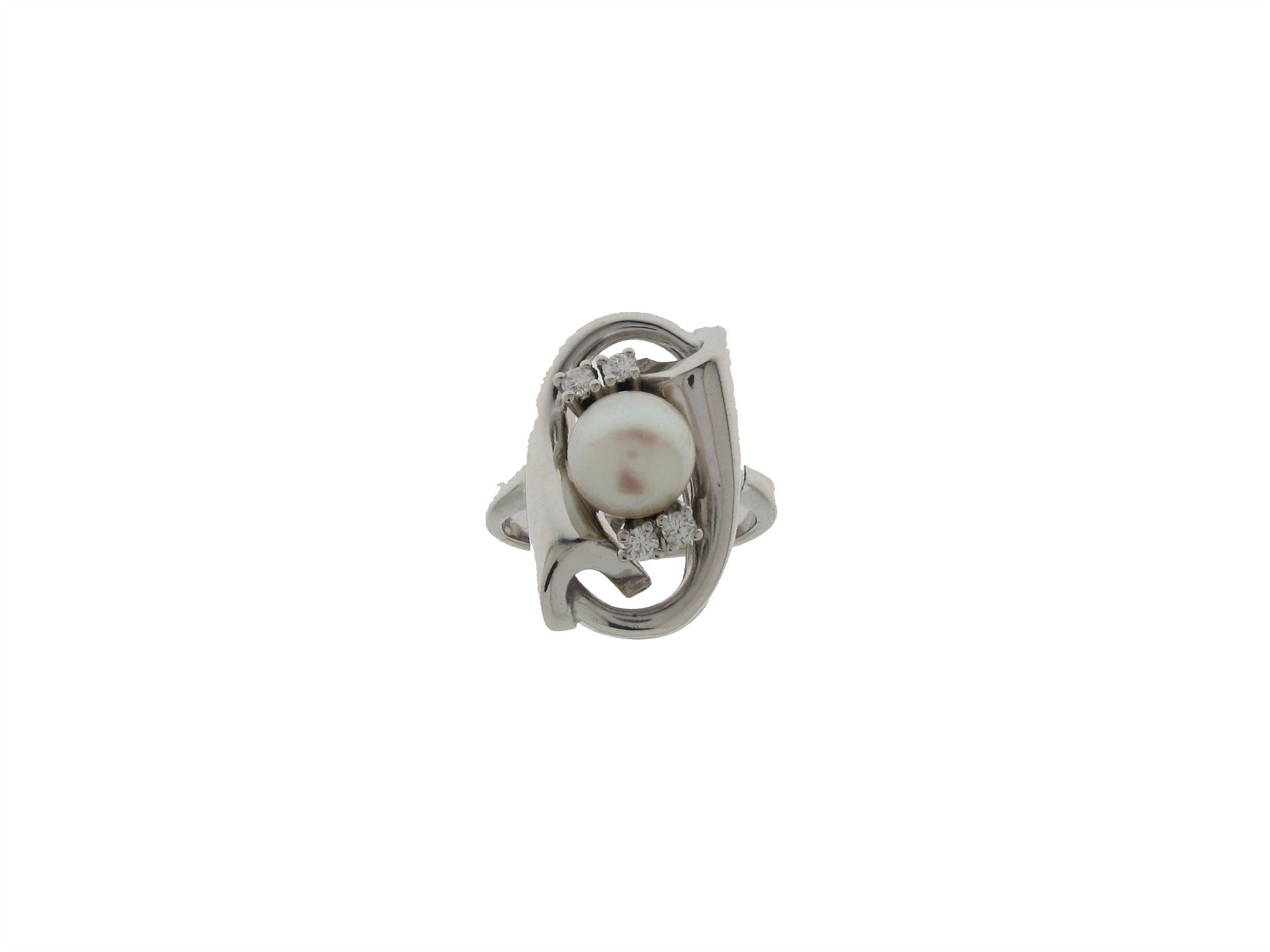 750 Weissgold (Palladium legiert), Ringgrösse 54, 4 Brillanten ca. 0.12 ct ca. H vsi, 1 Kulturperle, Versicherungswert: CHF 3000 ///