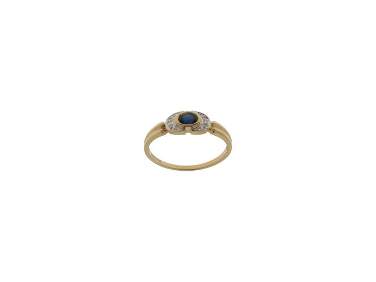 750 Gelbgold rhodiniert, Ringgrösse 57, 2 Diamanten 8/8 ca. 0.012 ct, 1 Safir, facettiert, Versicherungswert: CHF 850 ///