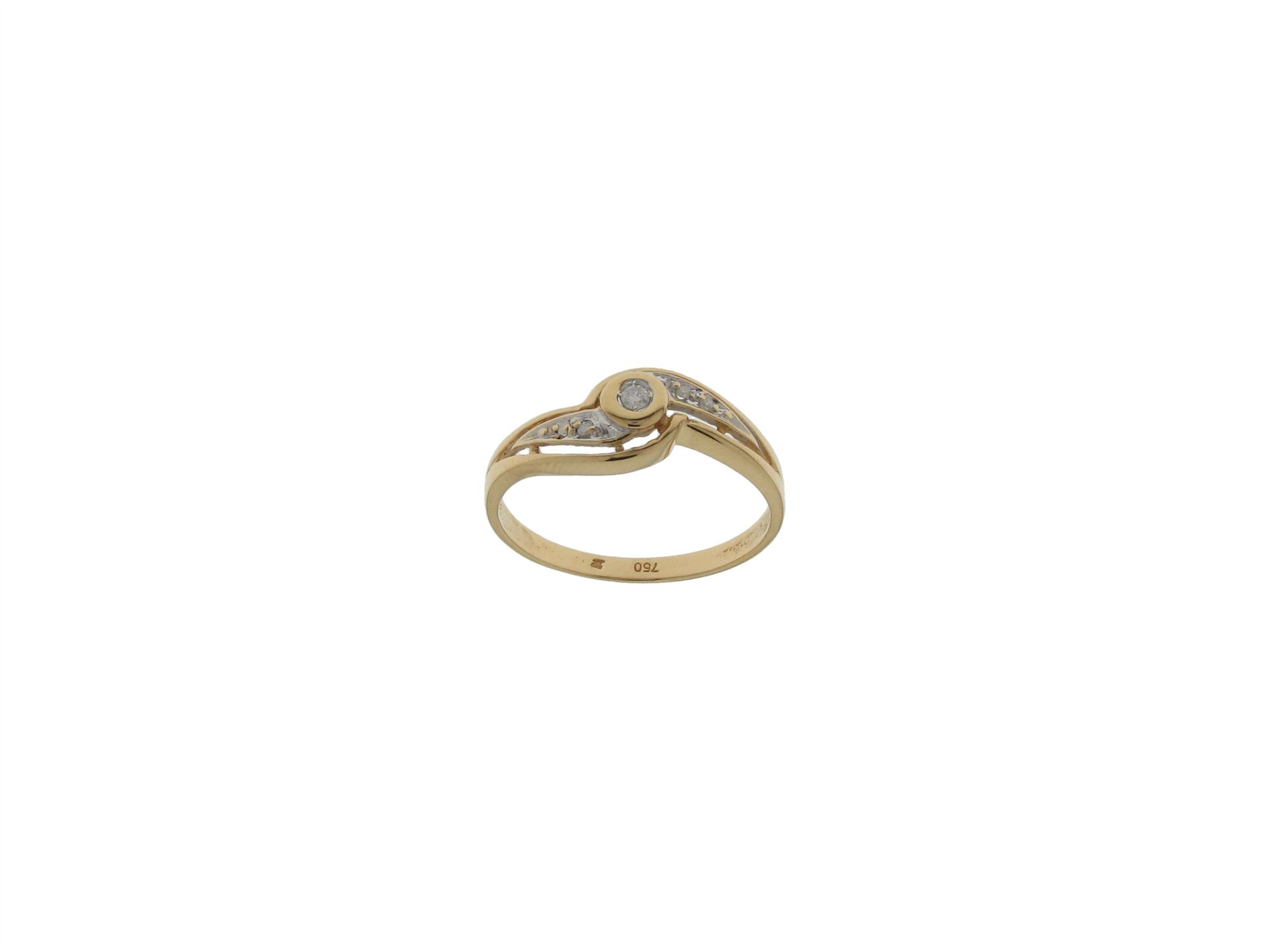 750 Gelbgold rhodiniert, Ringgrösse 58, 4 Diamanten 8/8, 1 Brillant ca. 0.03 ct ca. H vsi, Versicherungswert: CHF 1100 ///