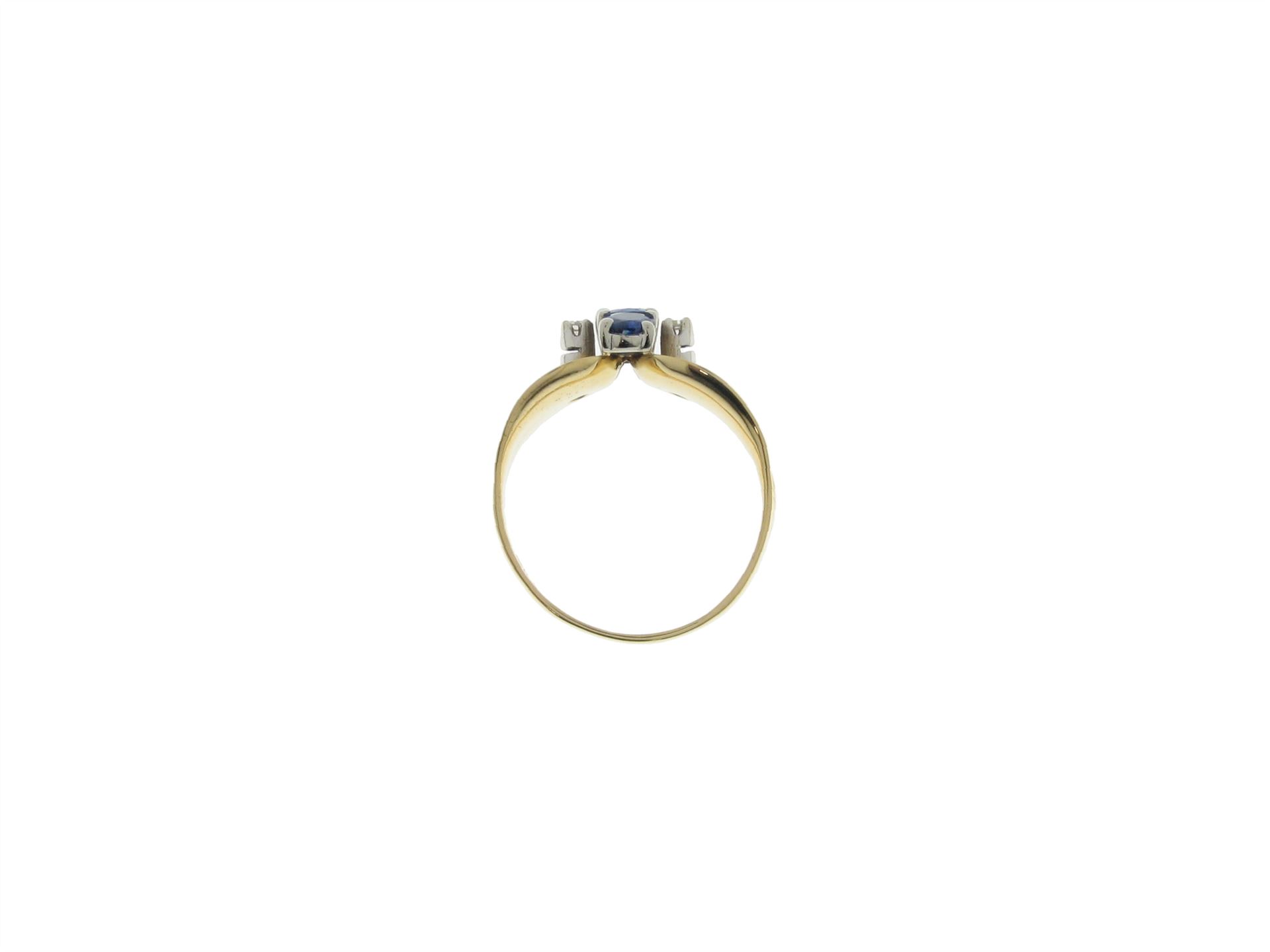 750 Gelb- und Weissgold, Ringgrösse 53, 2 Diamanten 8/8 ca. 0.06 ct ca. H si, 3 Safire, facettiert ca. 0.76 ct, Versicherungswert: CHF 1600 ///- 7.5% Nickelanteil