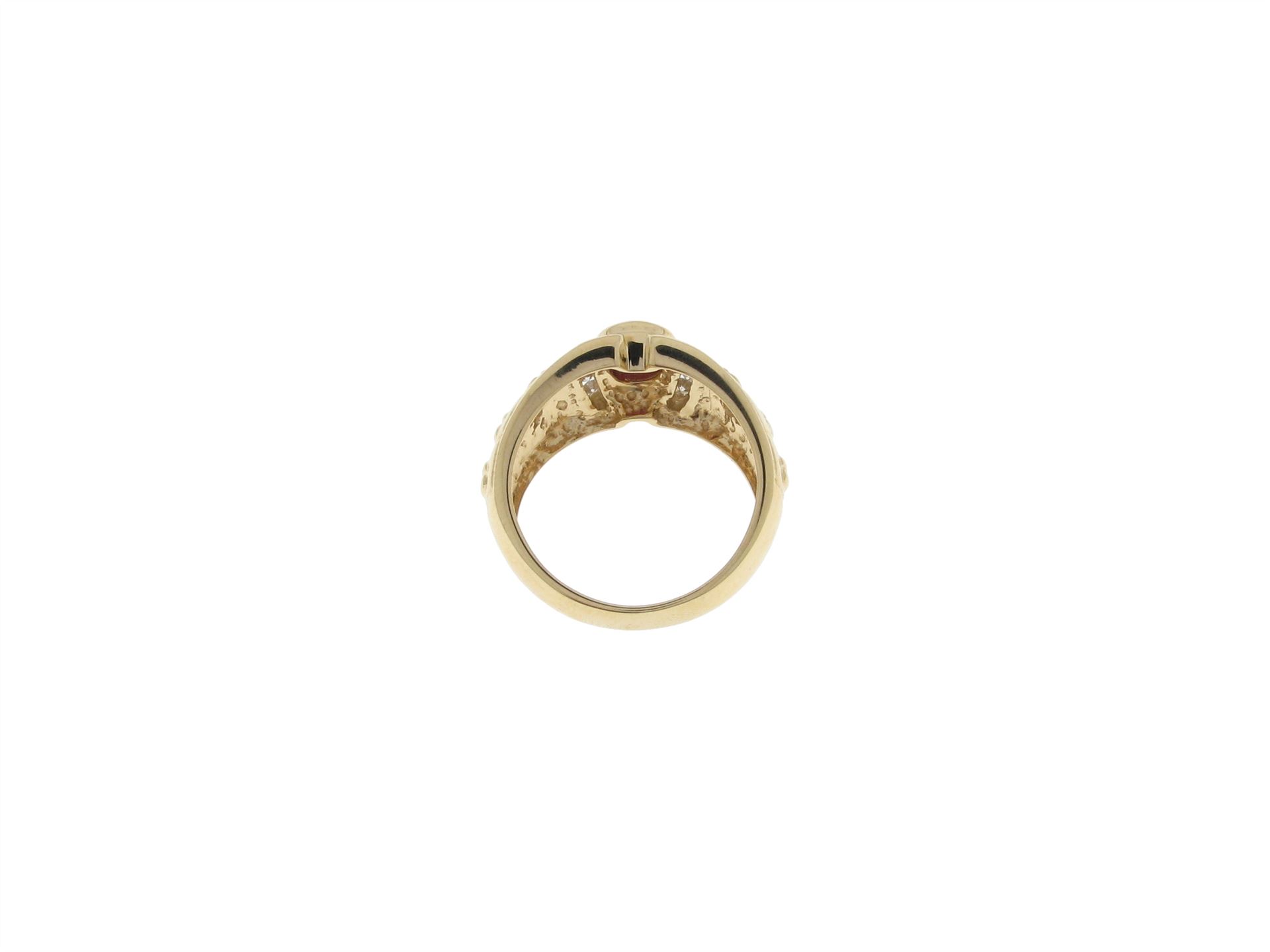 585 Gelbgold, Ringgrösse 52, 10 Diamanten 8/8 ca. 0.08 ct ca. H si, 1 Rubin facettiert ca. 0.35 ct, Versicherungswert: CHF 1250 ///