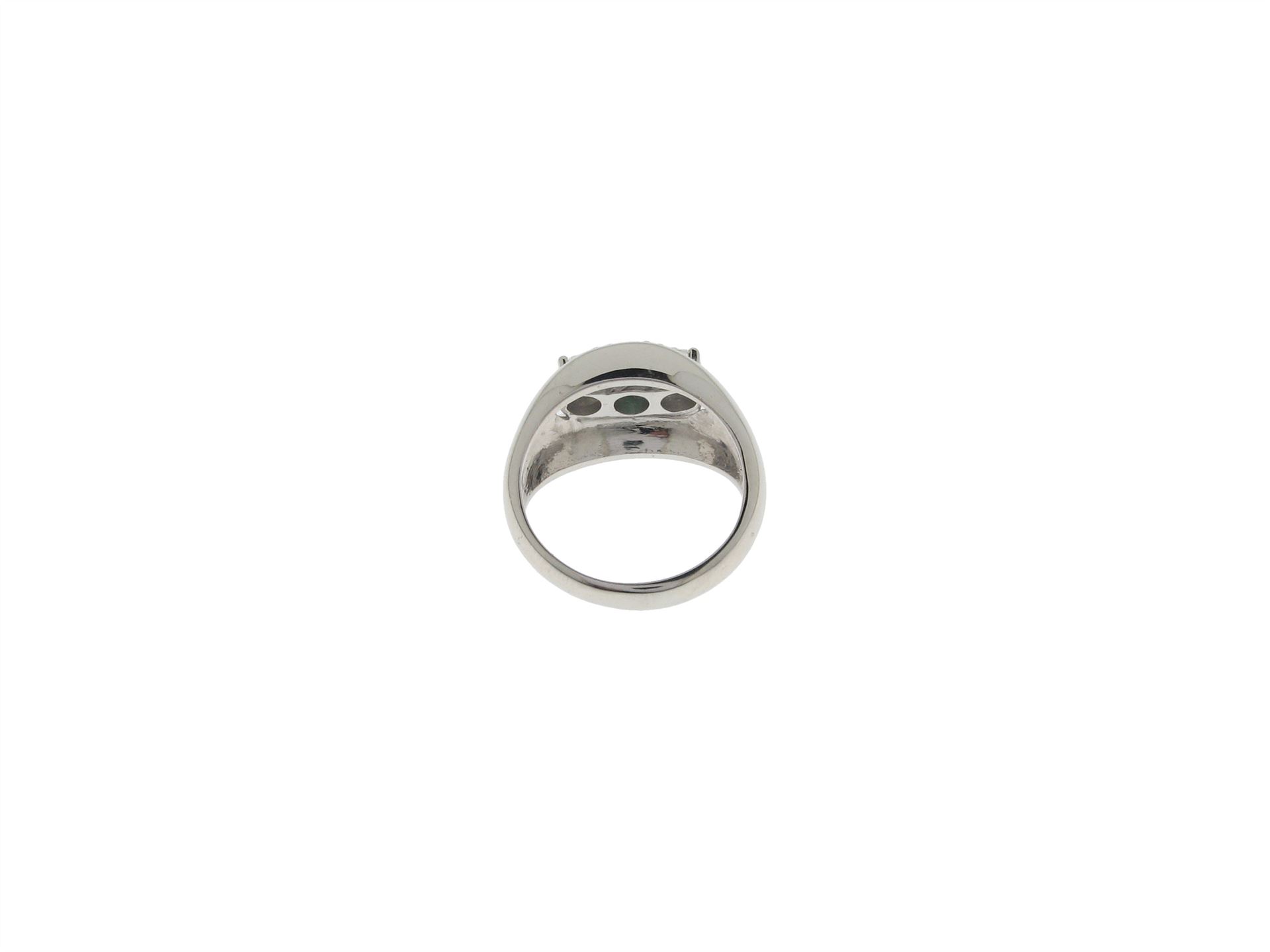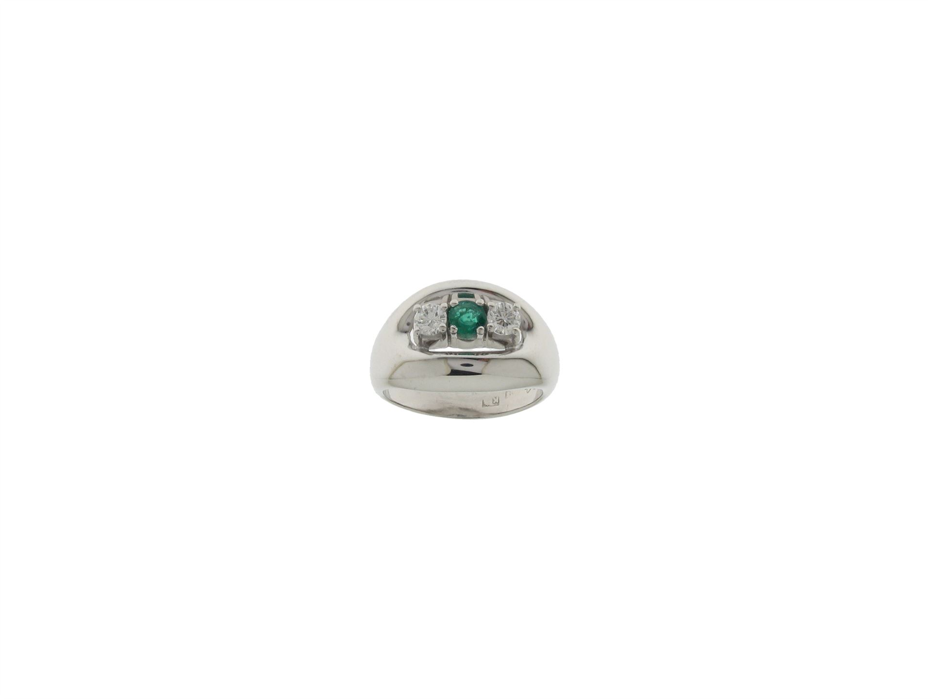 750 Weissgold, Ringgrösse 45, 2 Brillanten ca. 0.24 ct ca. H si, 1 Smaragd facettiert ca. 0.14 ct, Versicherungswert: CHF 2200 ///- 6.7% Nickelanteil