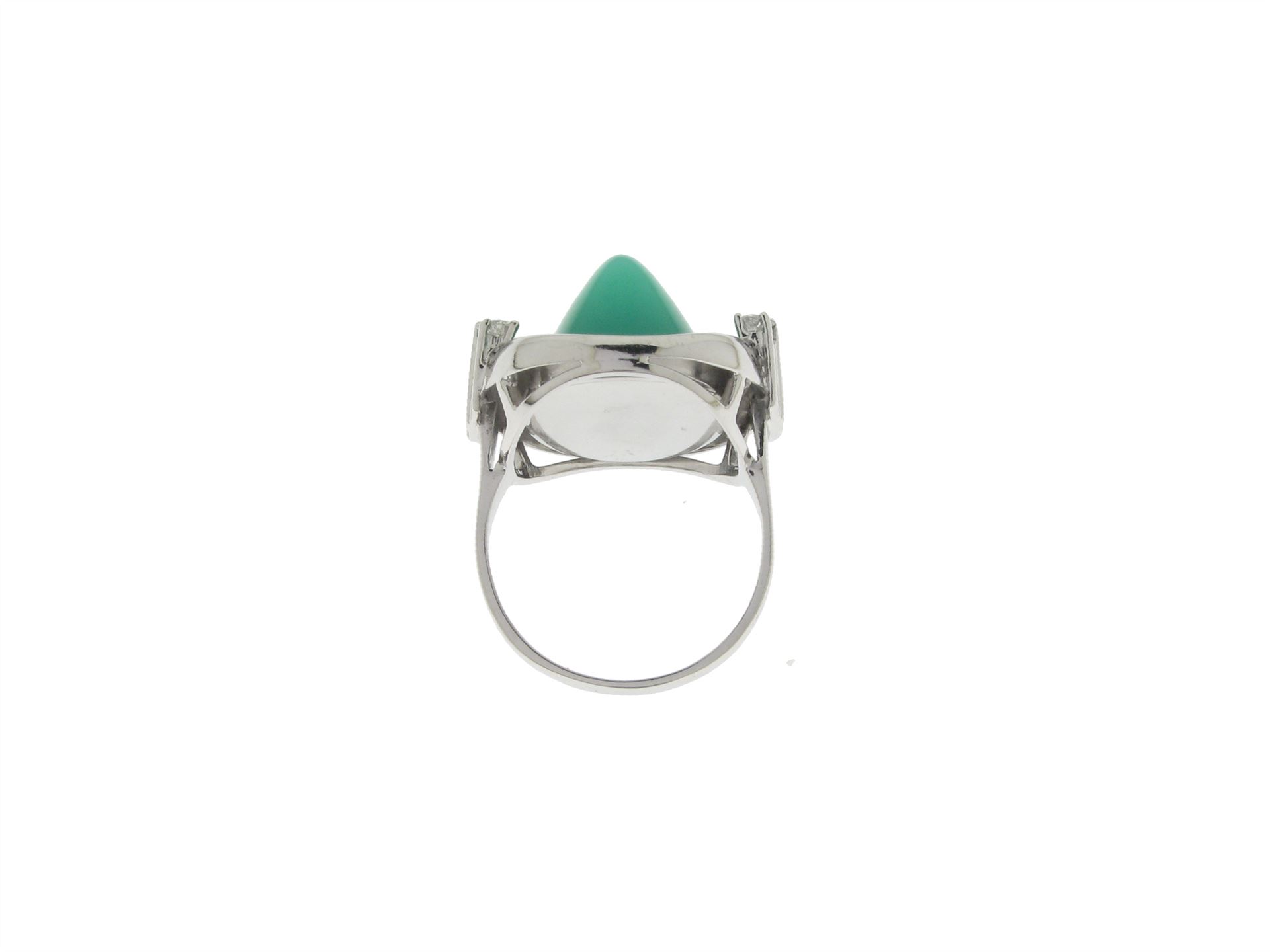 750 Weissgold (Palladium legiert), Ringgrösse 58, 6 Brillanten ca. 0.5 ct ca. H si, 1 Chrysopras Cabochon ca. 20 ct, Versicherungswert: CHF 3200 ///