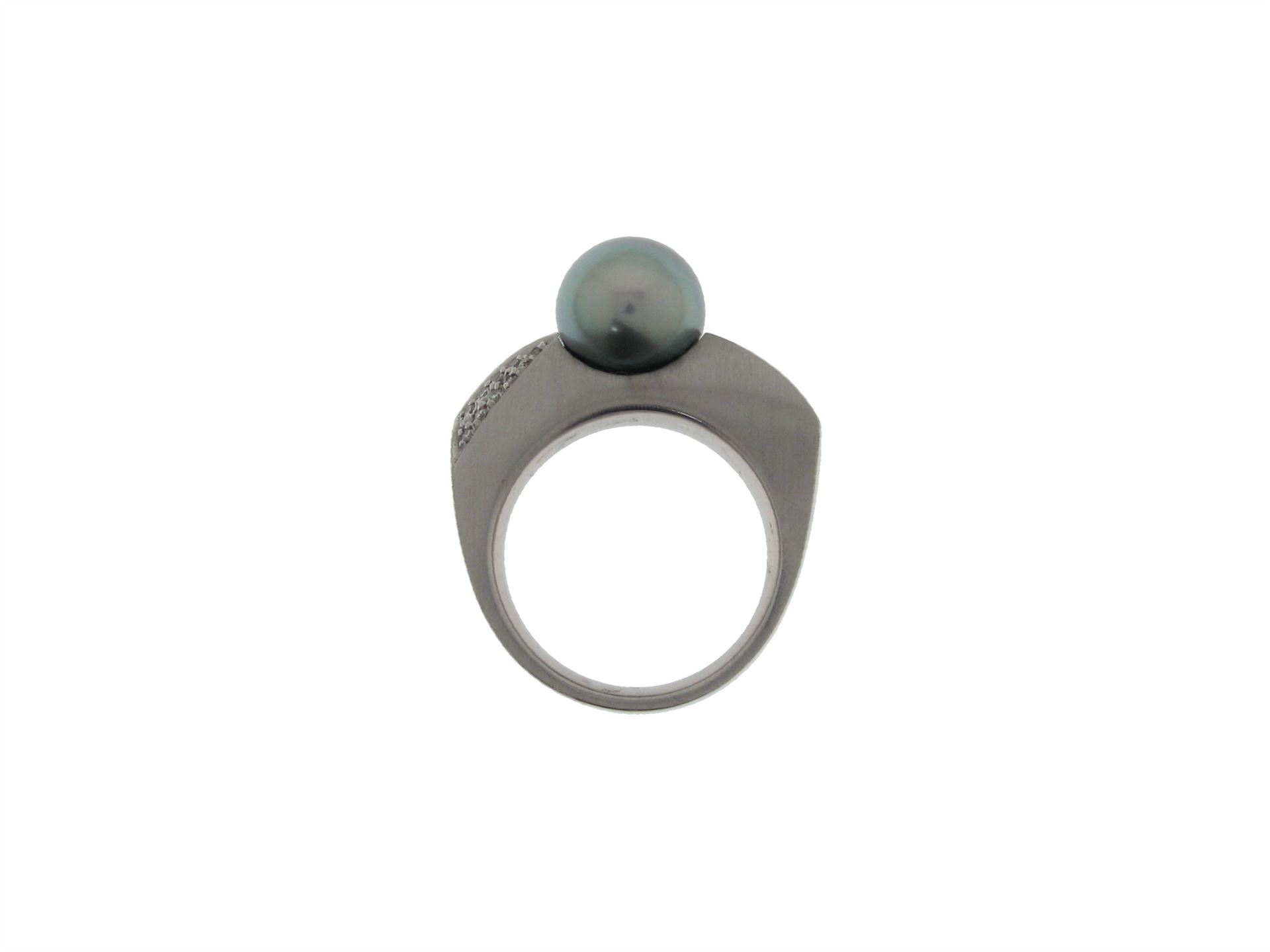 750 Weissgold, Ringgrösse 56, 18 Brillanten 0.18 ct TW Lupenrein, 1 Tahiti-Kulturperle 10mm, Versicherungswert: CHF 6150 ///- Ungetragen