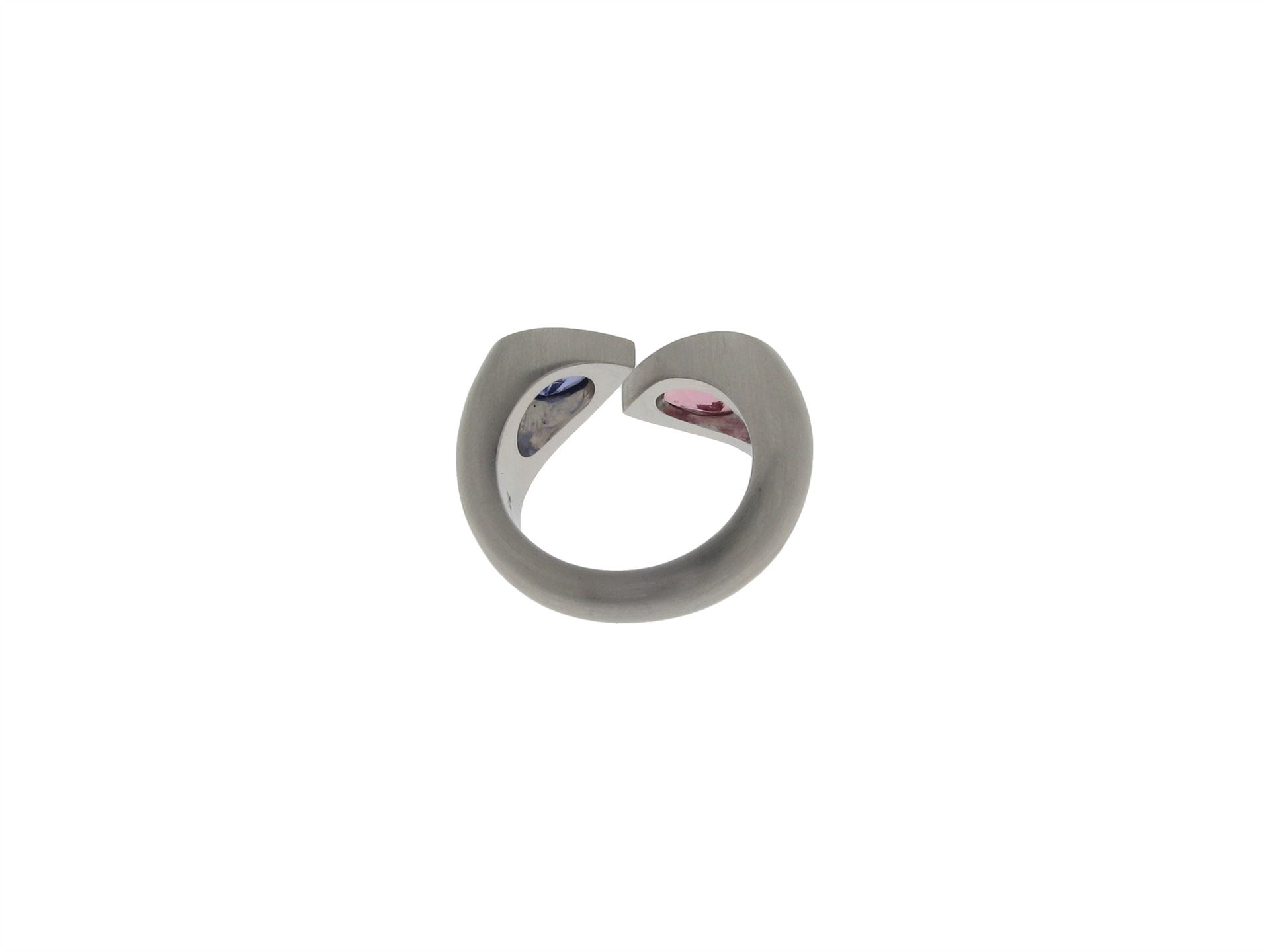 750 Weissgold, Ringgrösse 54, 1 Spinell, facettiert 1.95 ct, 1 Tansanit facettiert 1.09 ct, Versicherungswert: CHF 6570 ///- Ungetragen
