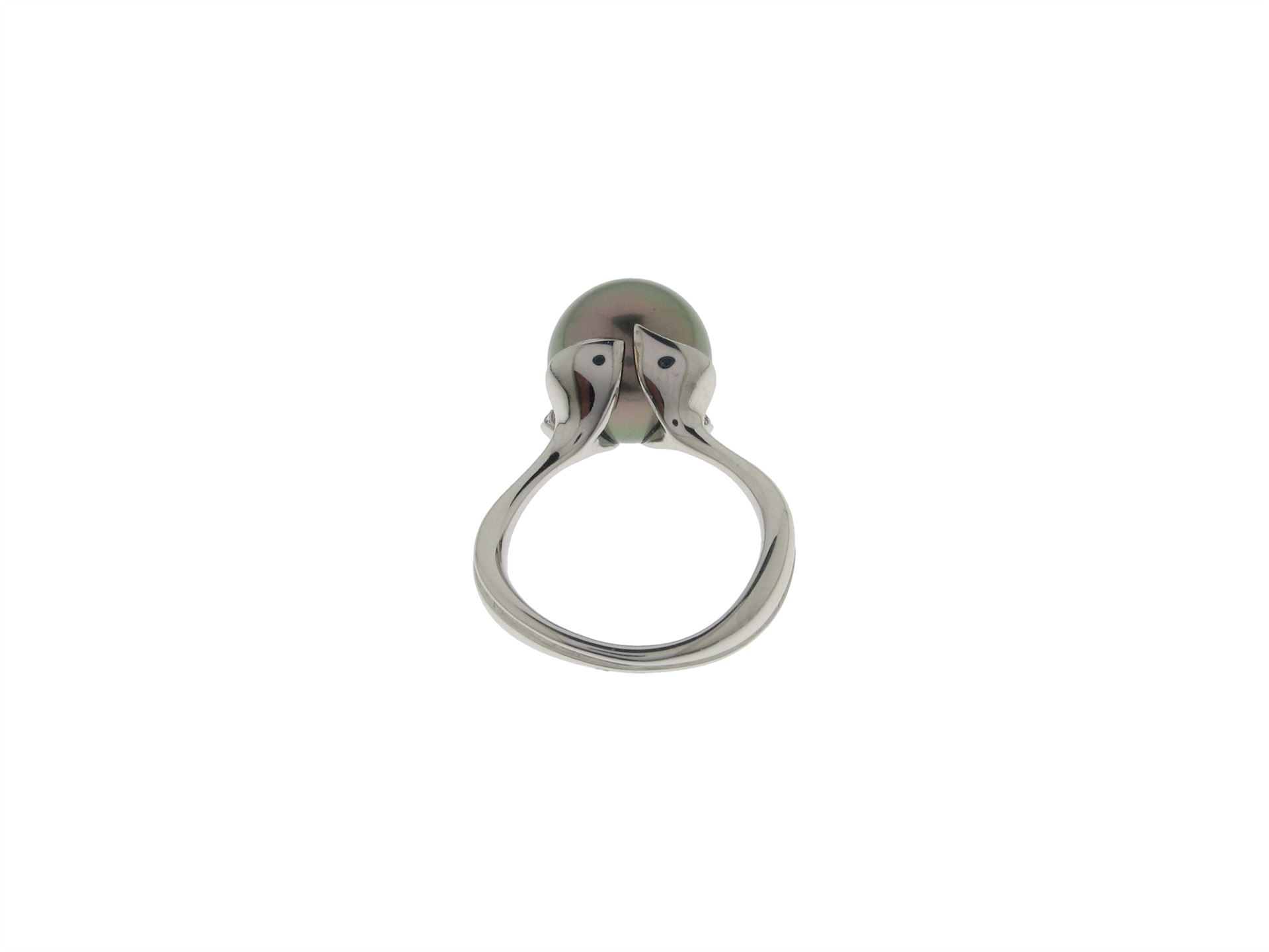 750 Weissgold, Ringgrösse 56, 20 Brillanten 0.1 ct TW vsi, 1 Tahiti-Kulturperle 11-12mm, Versicherungswert: CHF 2280 ///- Ungetragen