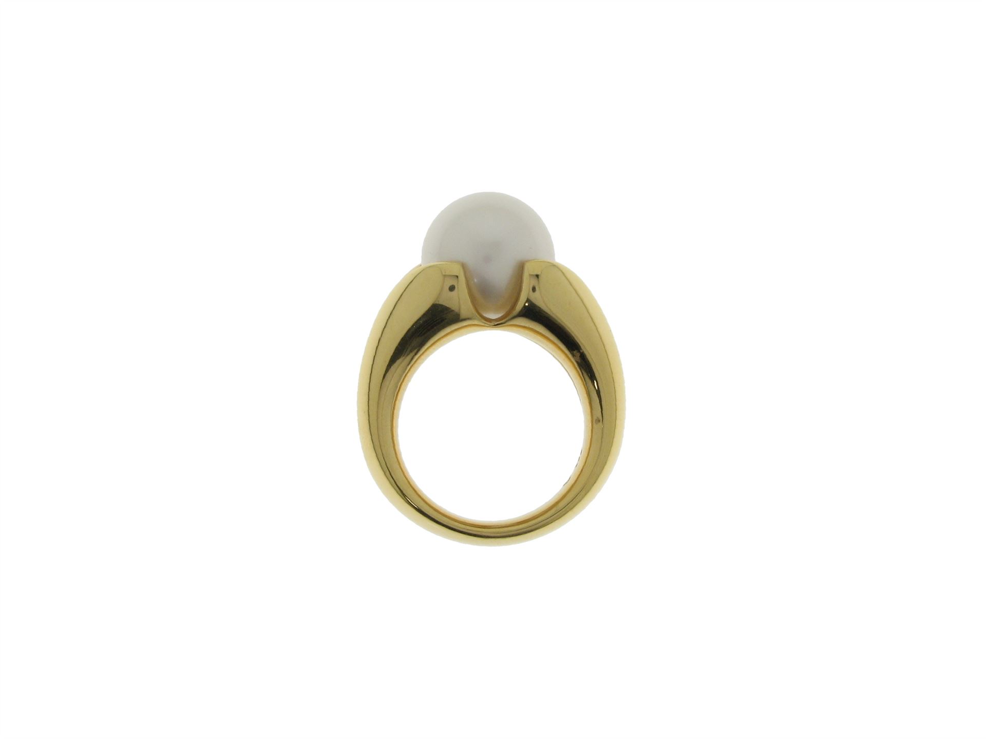 750 Gelbgold, Ringgrösse 53, 1 Südsee-Kulturperle 11-12mm, Versicherungswert: CHF 7280 ///- Ungetragen