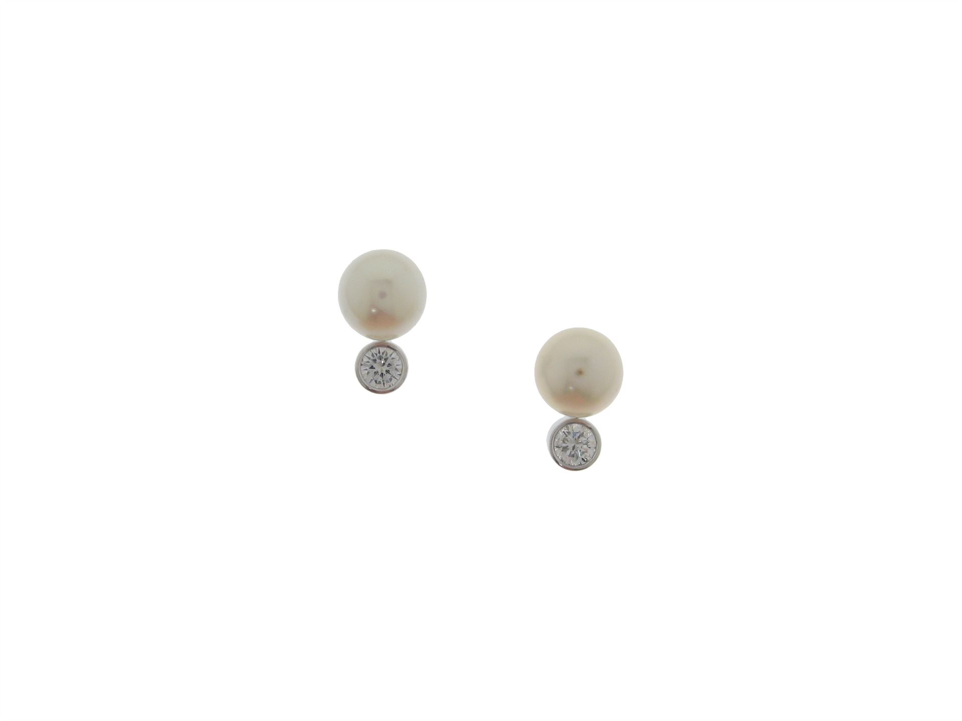 750 Weissgold (Palladium legiert), 2 Brillanten ca. 0.32 ct ca. G si, 2 Kulturperlen 7mm, Versicherungswert: CHF 1700 ///