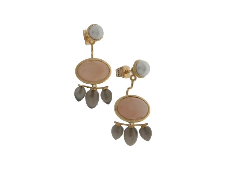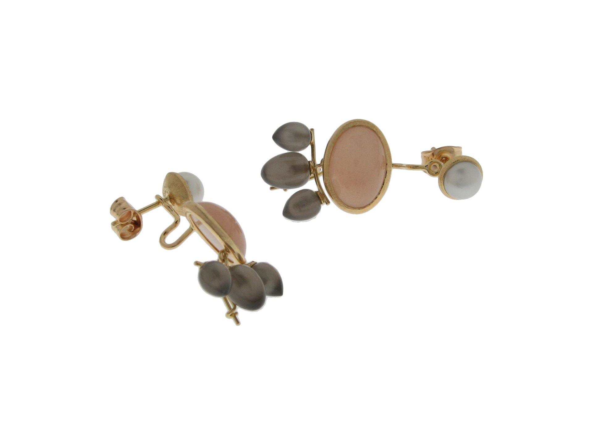 Ole Lynggard, 750 Gelbgold, 2 Süsswasserkulturperlen, 6 Mondstein Tropfen grau, 2 Mondstein Cabochons rosa, Versicherungswert: CHF 5300 ///- Ole Lynggard- Lotus