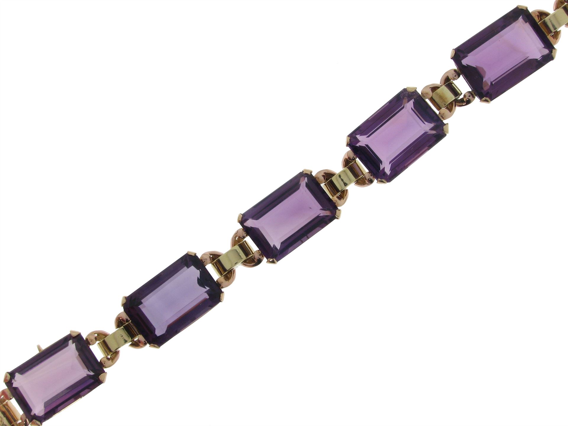 750 Gelb- und Rotgold, Länge 17.5 cm, 6 Amethyste facettiert ca. 61 ct, Versicherungswert: CHF 5000 ///