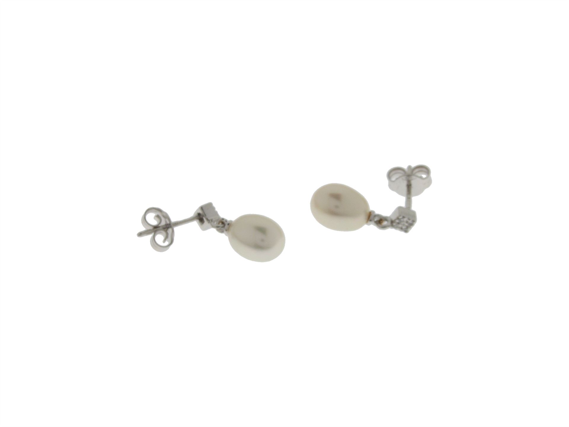 750 Weissgold, 8 Brillanten ca. 0.03 ct ca. H si, 2 Süsswasserkulturperlen, Versicherungswert: CHF 520 ///- 4.7% Nickelanteil