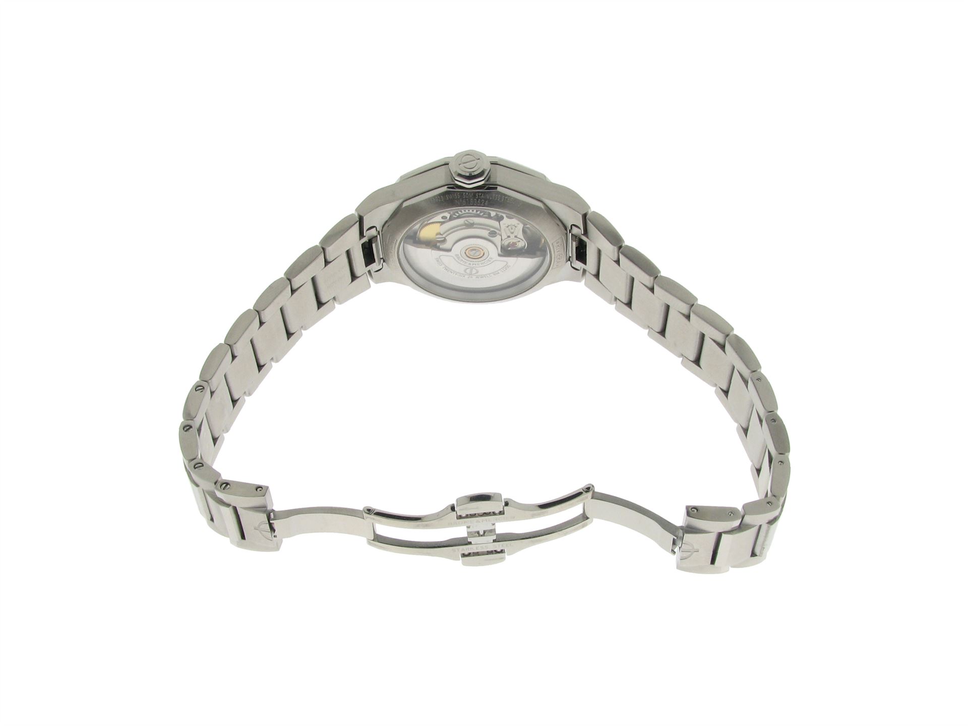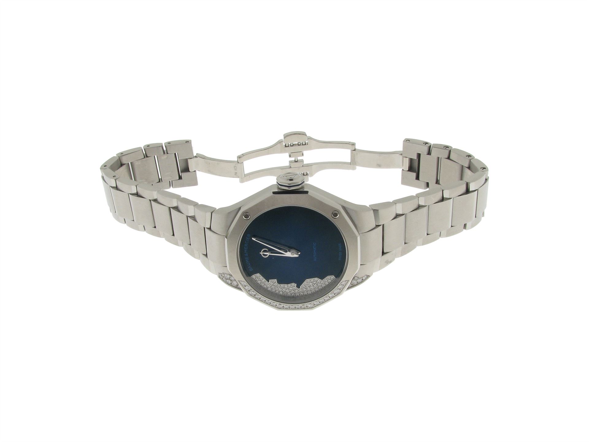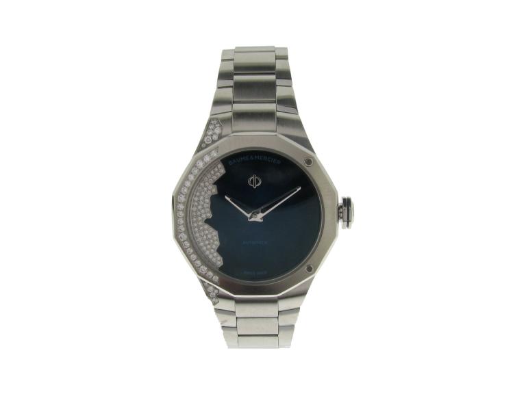 Baume & Mercier, Edelstahl mit Metallband, 96 Brillanten ca. 0.44 ct ca. TW vsi1, Versicherungswert: CHF 6150 ///- Baume & Mercier- Riviera Ref. MOA10677/Seriennr. 6183524- Safirglas, Wasserdicht, Automatikwerk- Garantie bis Januar 27- Spezialbox und Papi