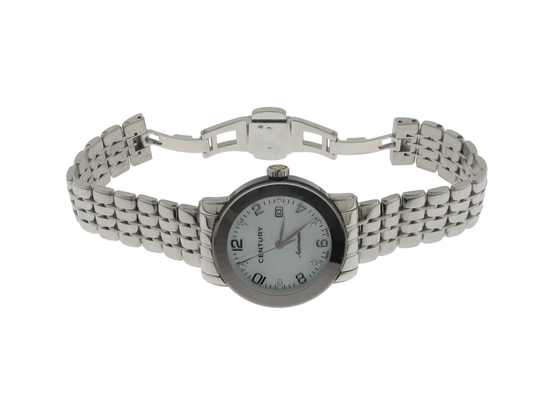 Century, Edelstahl mit Metallband, 30, 11 Diamanten ca. 0.033 ct, Versicherungswert: CHF 4250 ///- Century- kleine Hicke auf Glas- Elegance Ref. 648.7.Q.N1B12.SF- Safirglas, Wasserdicht, Automatikwerk- 1 Jahr Garantie