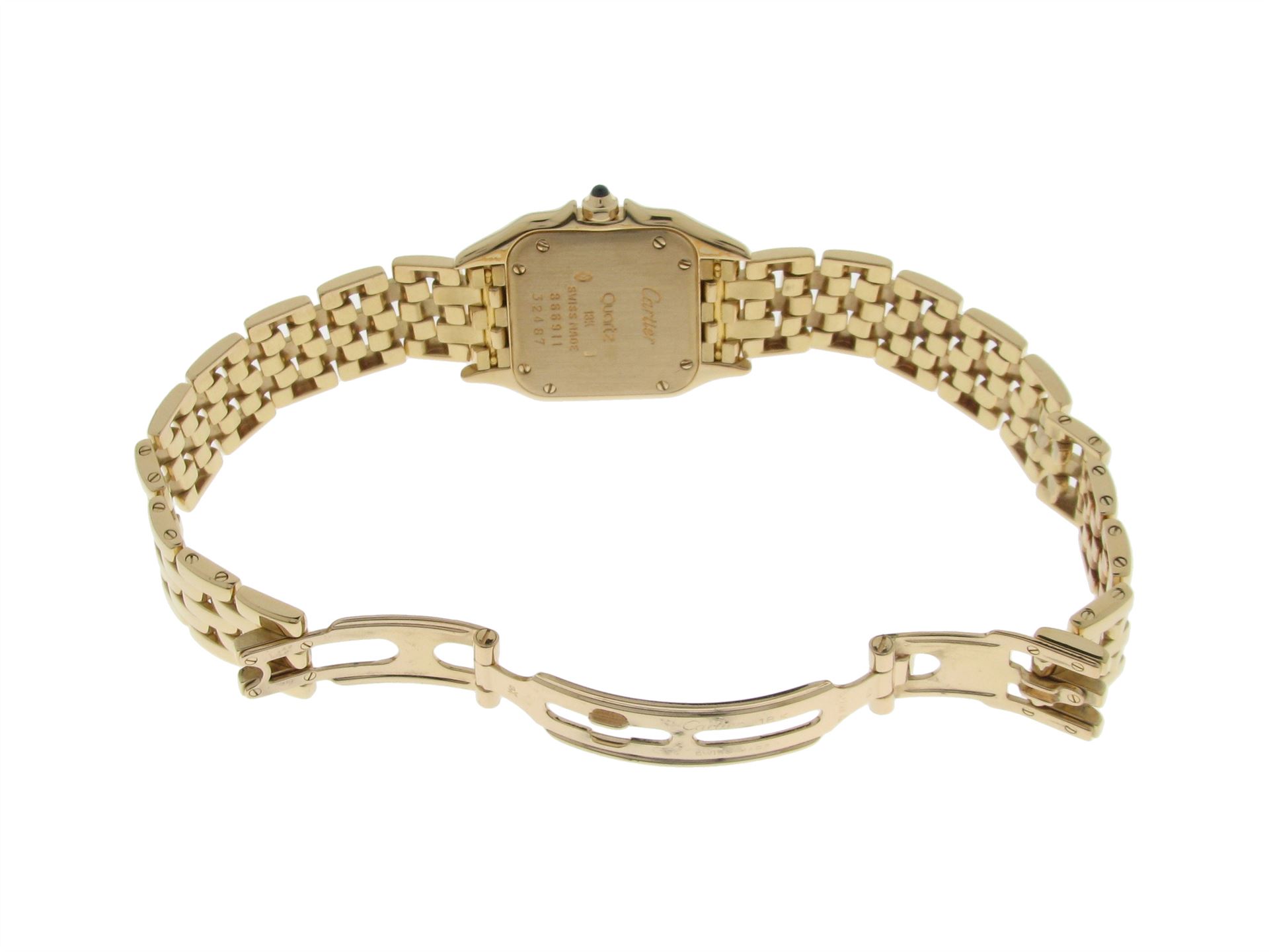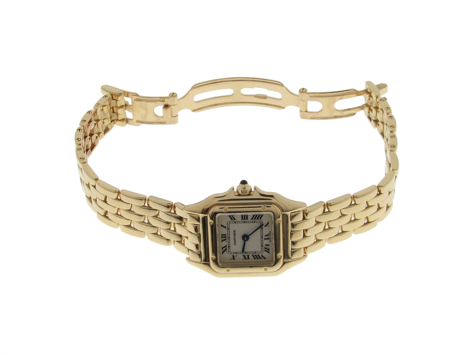 Cartier, 750 Gelbgold mit 750 Gelbgoldband, Versicherungswert: CHF 20000 ///- Cartier- Baujahr 1989- Panthère Ref. 866911/ Seriennr. 32487- Saphirglas, Wasserdicht, Quarzwerk- 2 Jahr Garantie (revidiert)- Etuis und Papiere